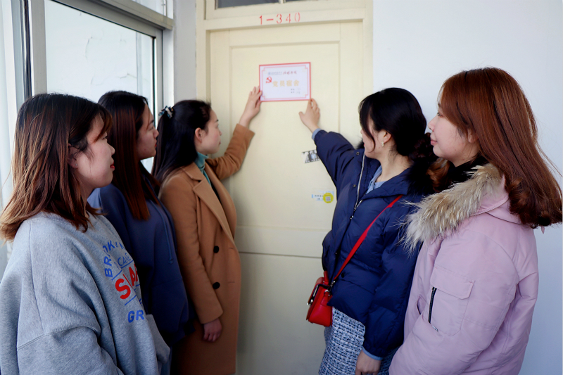 图为党员宿舍挂牌现场。记者 陈朱玲 摄
