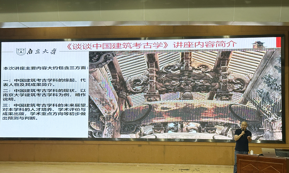 周学鹰作了题为《谈谈中国古建筑考古学》的学术报告。周雪鹰对中国建筑考古学科的缘起、发展、现状以及未来发展趋势作了高屋建瓴的概括和阐释,清晰地勾勒出中国建筑考古学的来龙去脉。特别是对代表人物与成果的介绍,画龙点睛,幽默风趣,赢得观众阵阵掌声。