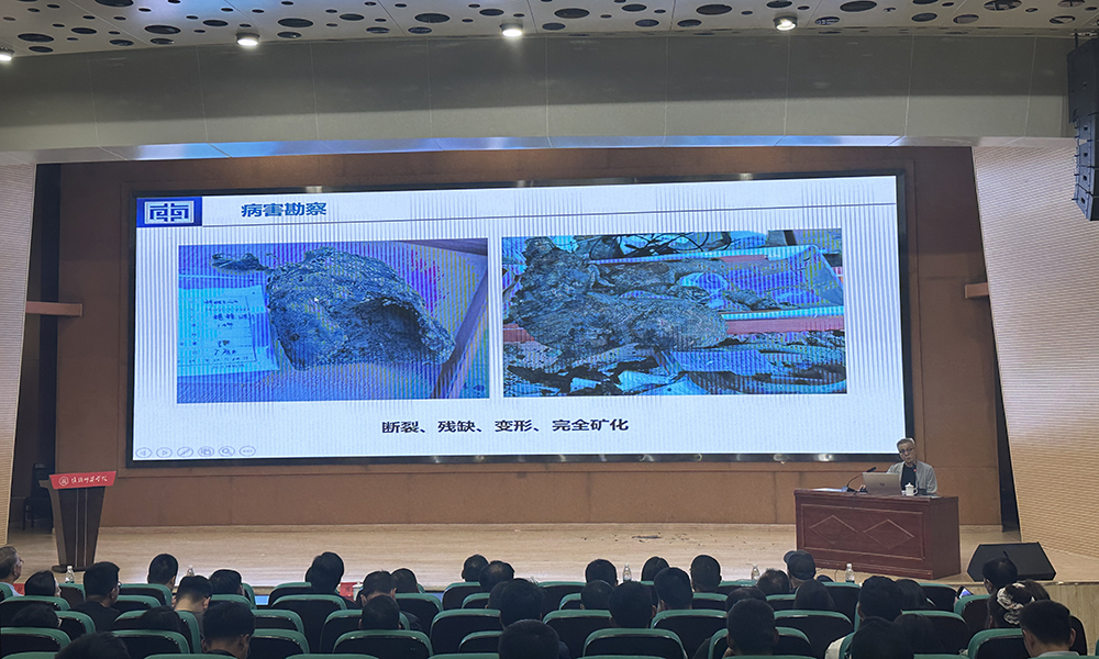 会上,余伟作了题为《大云山汉墓出士金属文物的保护修复》的学术报告。余伟采用大量实例介绍了大云山江都王陵的发掘情况和相关文物,让听众感受到文化瑰宝的魅力,也让人体会到每件精美文物的背后,文物保护修复工作人员展现出的专业的技术手段、精雕细琢的修复技艺和精益求精的工匠精神。